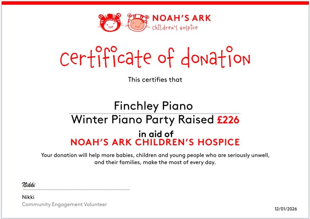 Here is my blog, with photos showing how much fun my pupils have at our piano parties and soirees each year. We are also proud to have raised funds for the Noah’s Ark Hospice charity through the generosity of my pupils and their parents.